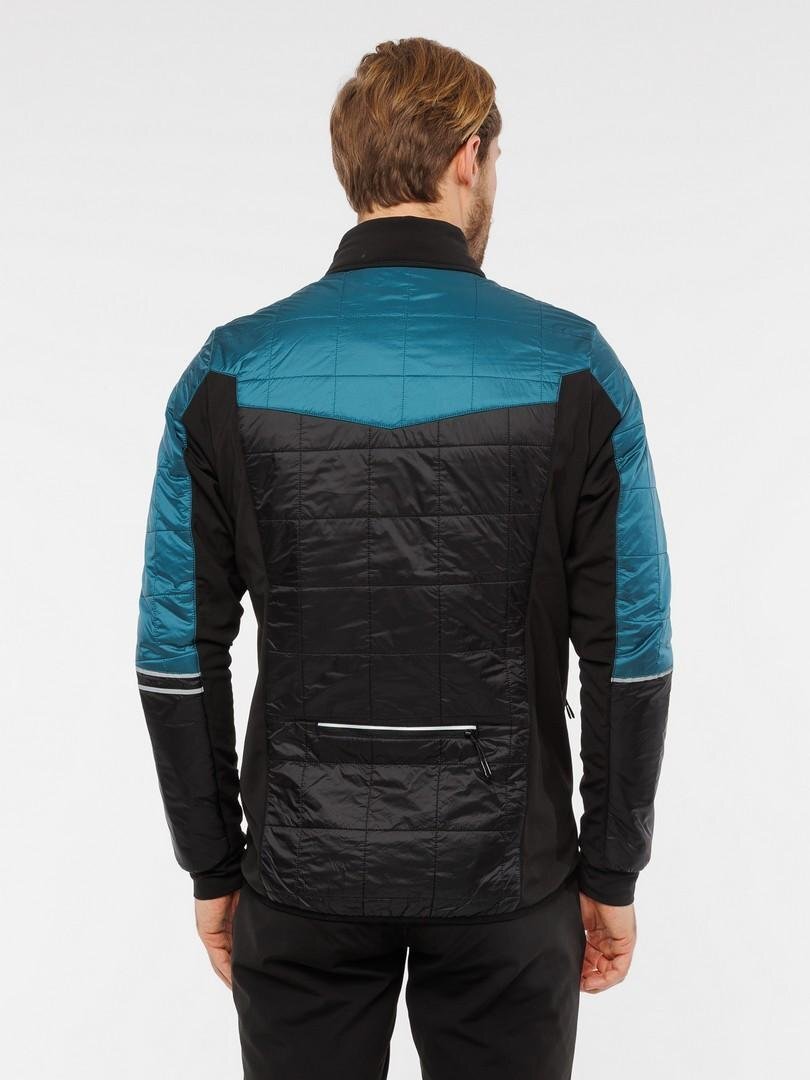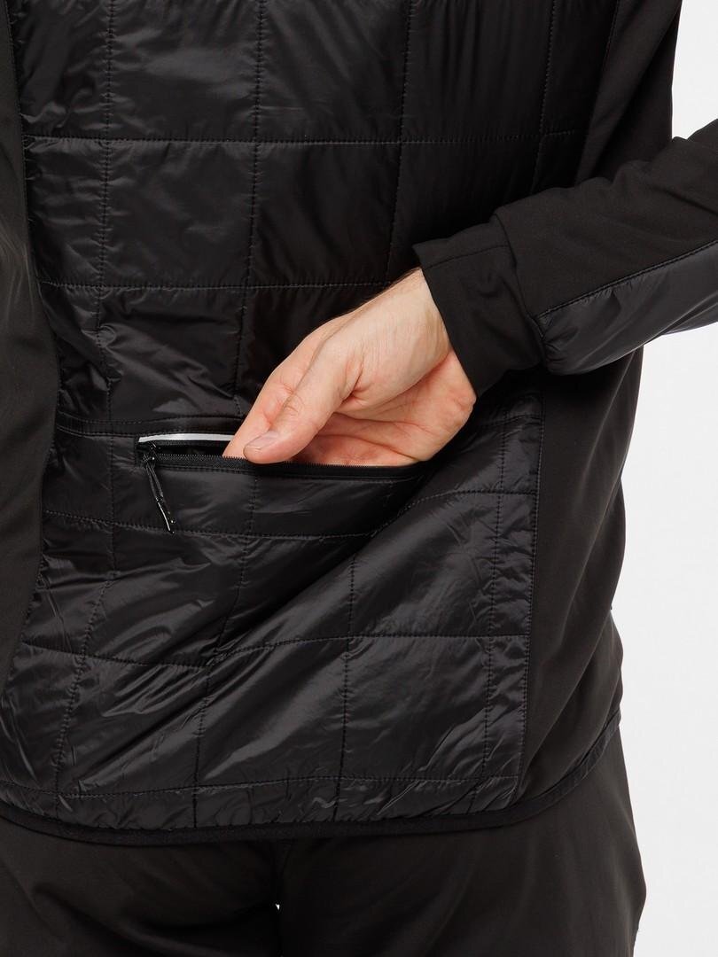 Куртка с вставками из стеганого утеплителя на груди, верхней части рукавов и спине. Снаружи расположена непродуваемая водоотталкивающая ткань, а по бокам, с внутренней стороны рукавов и на их сгибах использована дышащая эластичная ткань с микрофлисом с изнаночной стороны.