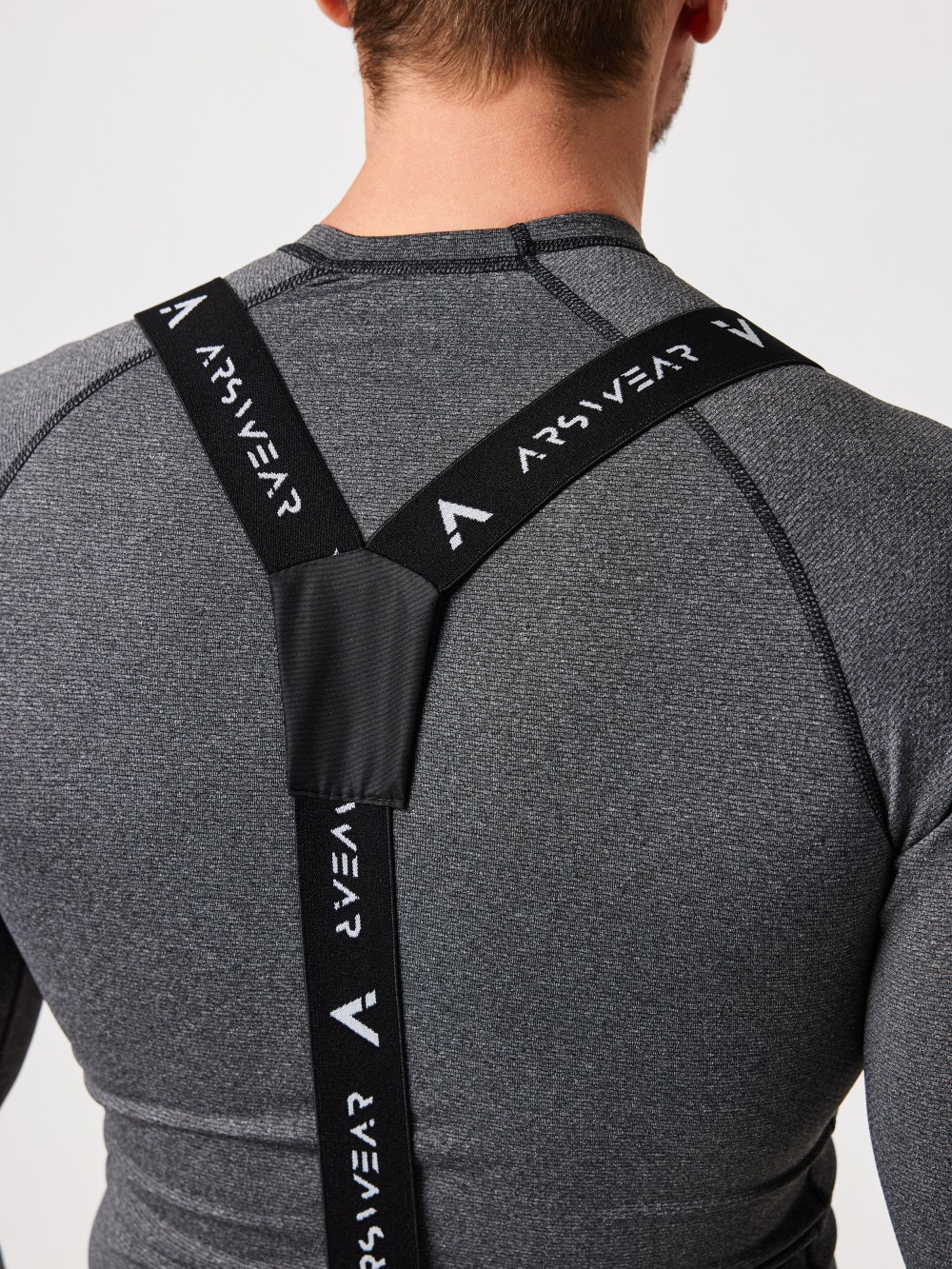 Подтяжки выполнены из плотного, эластичного материала и крепятся на липучки. По бокам сплошные молнии, которые легко расстегиваются для быстрого переодевания.