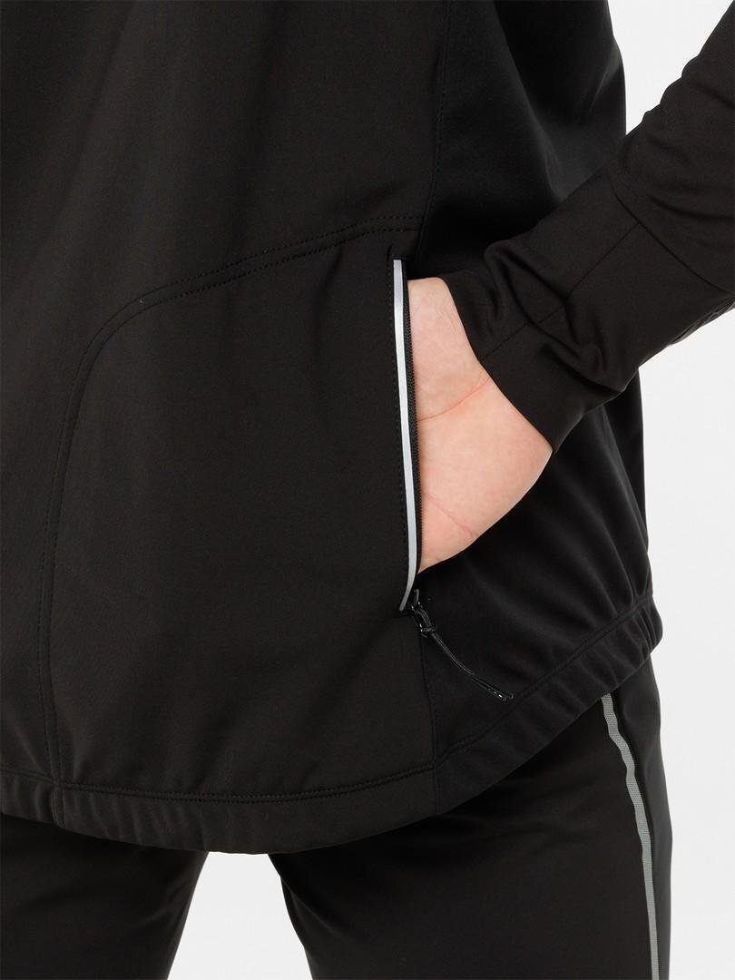 Из функциональных особенностей - резинка по низу куртки с силиконовой полосой для более плотного соприкосновения с телом и предотвращения соскальзывания при активных движениях. Центральная застежка молния с мягкой защитой подбородка. Воротник-стойка защищает от ветра. Куртка оборудована большим количеством карманов: два боковых снаружи на молнии, один карман на спине на молнии + карман нагрудный на молнии позволяют взять на тренировку спортивное питание, аксессуары и другие необходимые на тренировке мелочи. В брюках сзади предусмотрен карман на молнии для хранения мелочей. Предусмотрены светоотражающие детали повышающие видимость в темное время суток. Молнии внизу брючин до уровня колена позволяют быстро переодеться после тренировки.