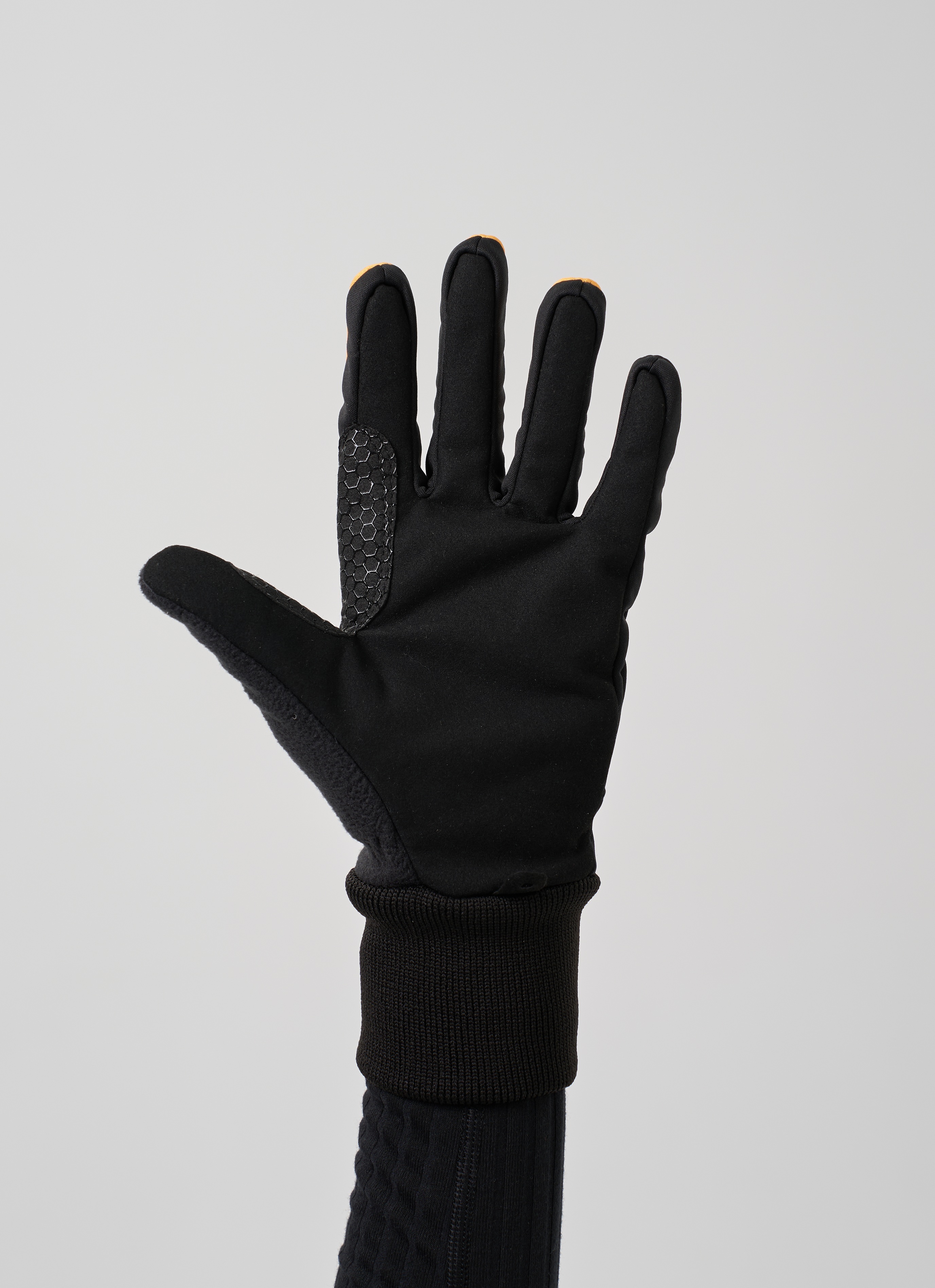 Из функциональных особенностей - усиление внутренней и внешней стороны большого пальца для повышения износостойкости в зонах контакта с лыжной палкой. Флисовое покрытие больших пальцев. Удобная манжеты для фиксации перчаток на запястьях.
