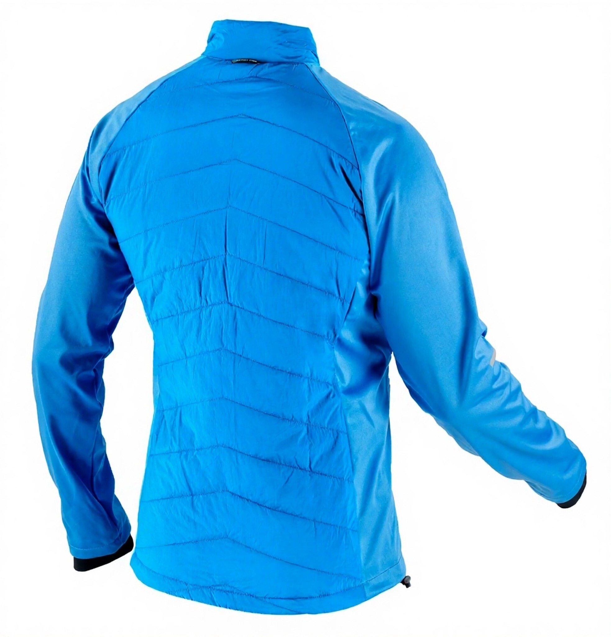 Лыжная куртка имеет полуприталенный силуэт. Для лучшей теплоизоляции в куртке широкие трикотажные манжеты, что дополнительно защищает верх ладони от обветривания. Низ оснащен резинкой и фиксаторами. Центральная молния с мягкой защитой подбородка от защемления. Спереди два боковых кармана на молниях.