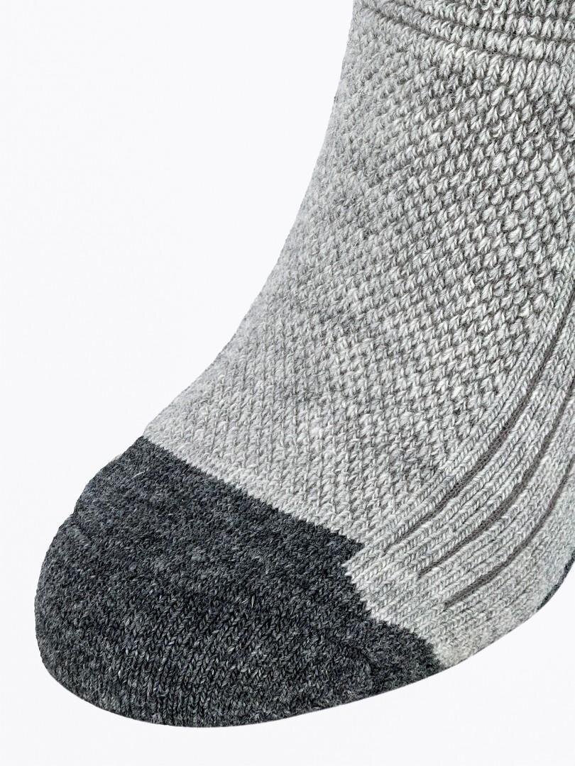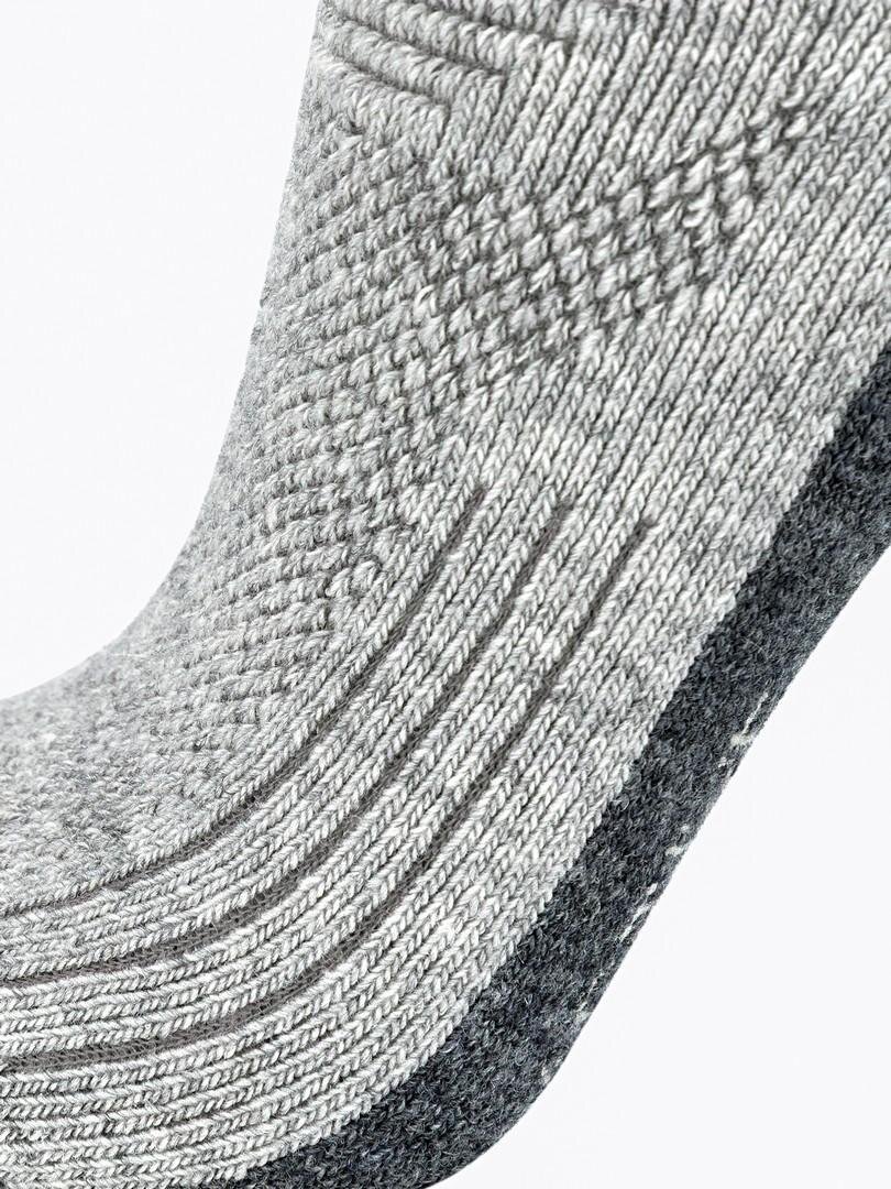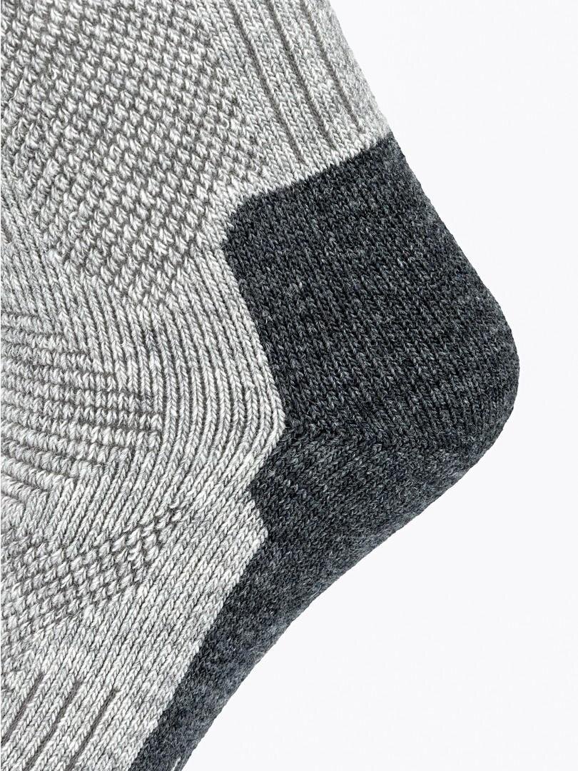 Тренировочные носки плотно облегают стопу, не сдавливая ее, благодаря анатомическому крою и эластичным манжетам. Такая конструкция предотвращает скольжение по ноге даже при длительных пробежках или других видах активности на свежем воздухе. Усиленные зоны в области пятки и носка дополнительно защищают от истирания и повышают срок службы. Сетчатые вставки обеспечивают эффективный отвод влаги и вентиляцию, что способствует сохранению комфорта на протяжении всего дня.