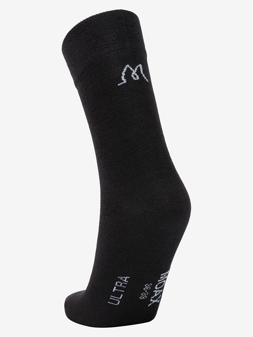 Moax Ultra тонкие, но теплые спортивные носки за счет шерсти в составе. Шерсть мягкая на ощупь, не вызывает раздражения кожи и обладает естественными антибактериальными свойствами. Синтетические волокна способствуют быстрому высыханию изделия после стирки или намокания, что особенно важно в условиях переменчивой зимней погоды. Носки длительное время сохраняют тепло, обладают хорошими терморегулирующими свойствами.