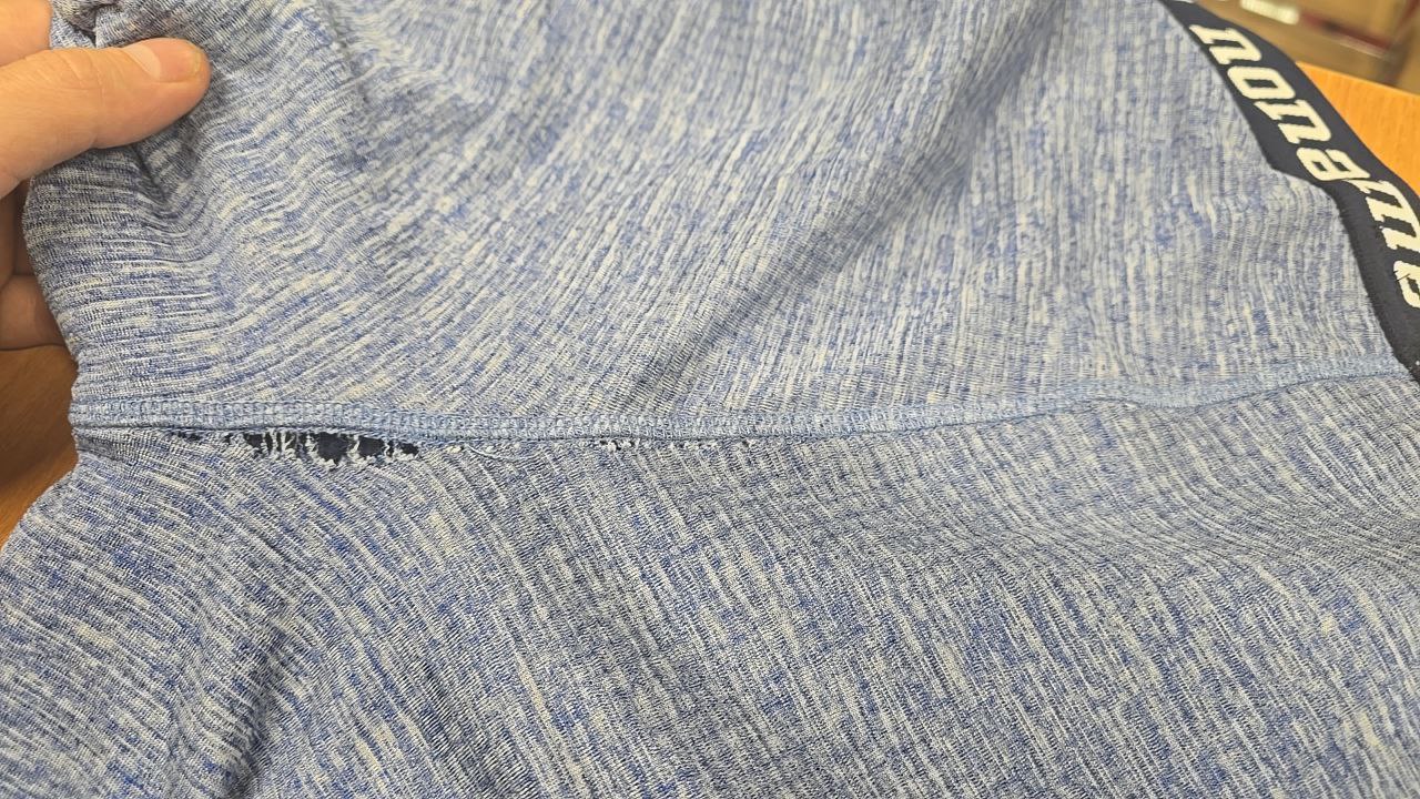 Уценённый товар. Расходится цетральный шов сзади кальсон (см. фото). Остальные швы при проверке нормальные.