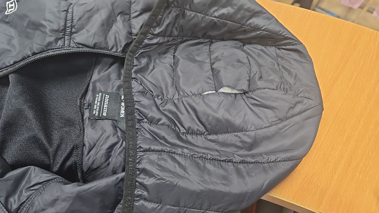 Уценённый товар. На капюшоне разошёлся один шов (на 10 см в длину) (см. фото). Остальные швы на поверку нормальные.