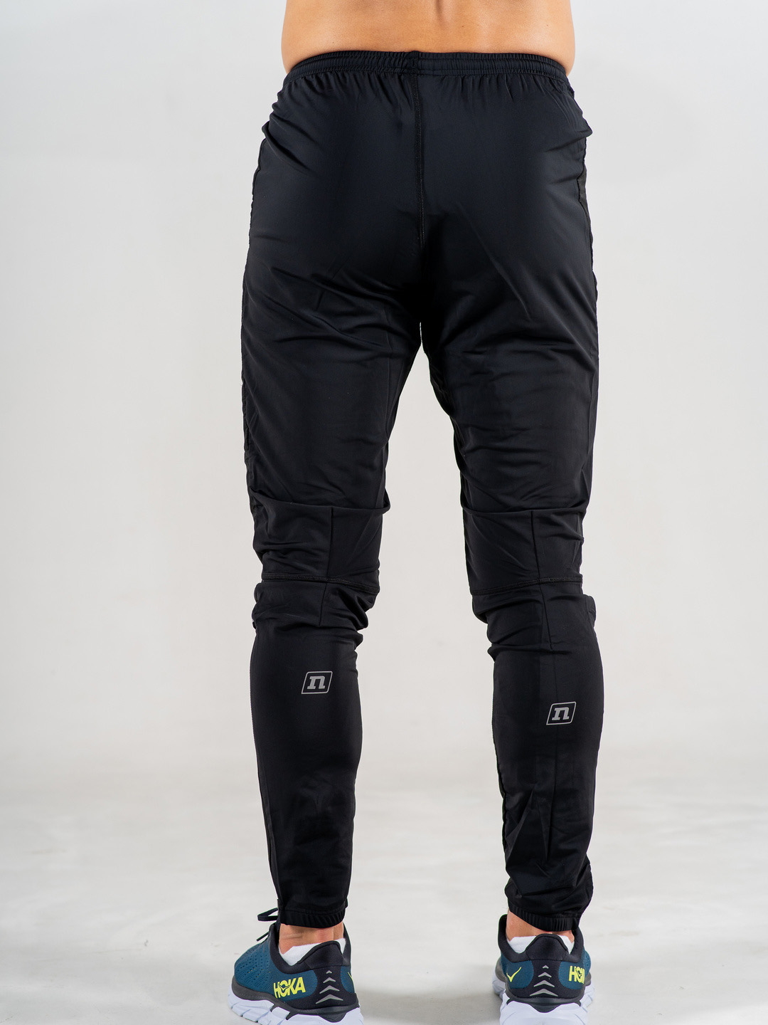 Спереди спортивные брюки выполнены из дышащей ткани Trail Micro с влагоотталкивающими свойствами, защищает от легкого дождя и ветра, сзади - дышащая эластичная лайкра, которая идет полностью по всей задней поверхности брюк.