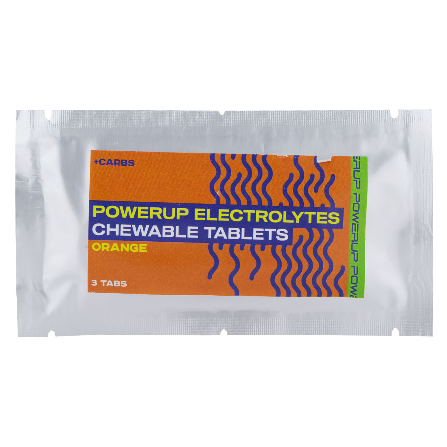 PowerUp Electrolytes Chewable Tablets жевательные таблетки с углеводами, электролитами (натрий, калий, магний, кальций, фосфор, хлориды), которые помогают восполнить уровень электролитов в организме. Представляет собой сочетание источников электролитов и энергии, которые повышают способность тела поглощать воду во время тренировки, поддерживают выносливость и защищают от судорог. Напиток обеспечивает организм энергией, восстанавливает водно-солевой баланс, повышает выносливость во время длительных тренировок и соревнований, а также сокращают время восстановления после нагрузки. Быстро растворяются во рту.
